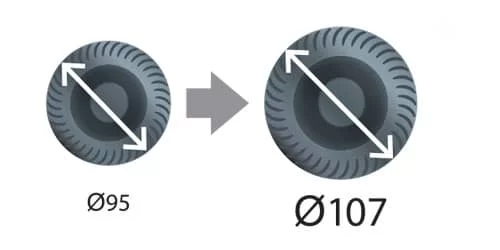 Новата вентилаторна турбина с по-голям диаметър постига по-добър въздушен поток и по-ниски нива на шум.